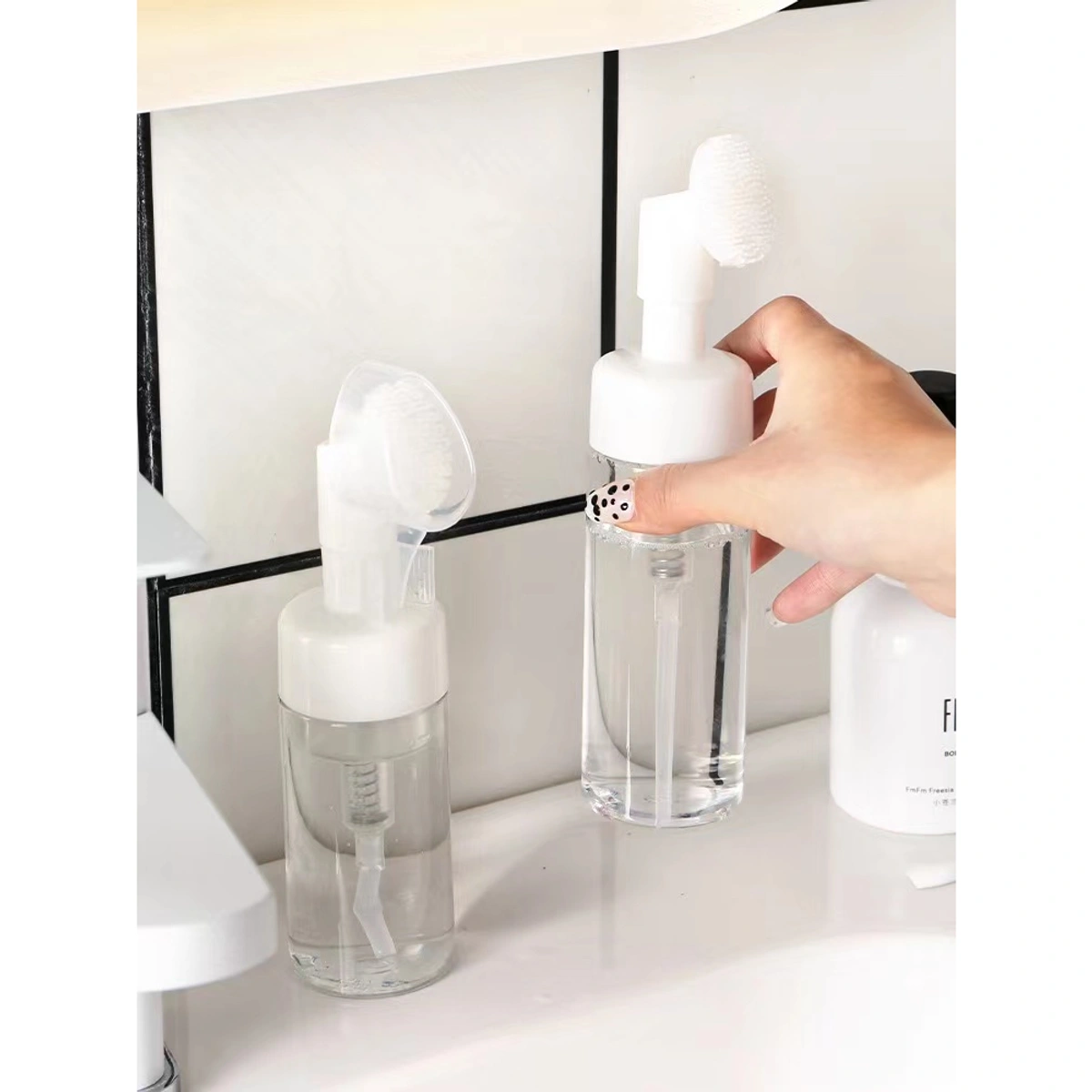 Frasco Pump Espumador Com Escova De Silicone Para Limpeza Facial